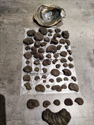 Des ammonites en pyrite de fer, oursins, vertèbres et écailles de poissons, bois fossiles de l’Albien qui datent du crétacé inférieur 113 à 100,5 Ma, des ammonites et oursins qui date du cénomanien 100,5 à 93,9 Ma, et Turonien 93,9 à 89,75 Ma du crétacé supérieur, puis de superbes marcasites, sperkises, et boules de pyrites. Bref, de jolies trouvailles ont agrémentées ce séjour.