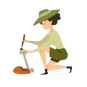 - Petit rateau de jardin, pelle, grattoir, brosse, tamis